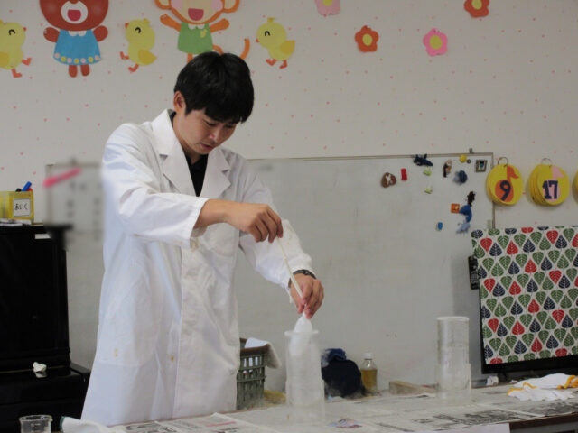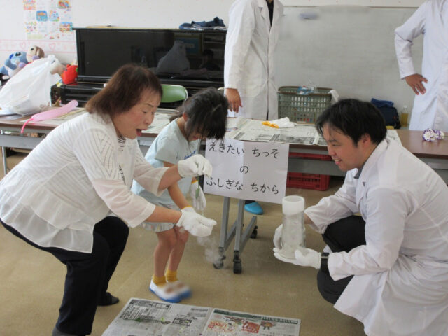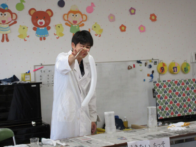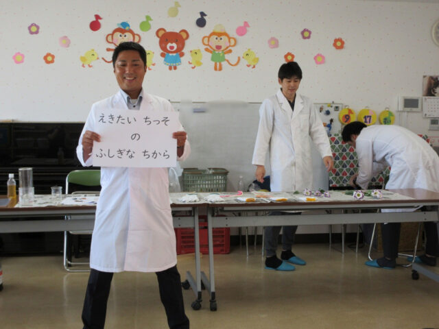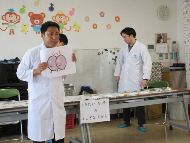 東海大学付属熊本星翔高等学校との一貫教育のひとつ「東海キッズまなびたいむ」の出前授業で・・・