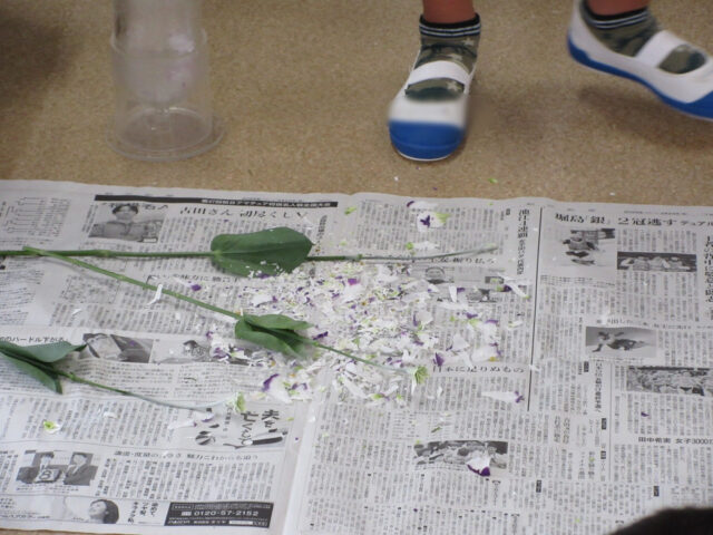 理科の先生とのじゃんけんに勝ったお友達が代表で、凍ったお花を触ると・・・