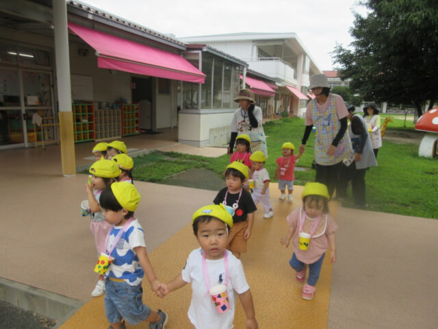 いちご組さんがKIP WEEk参加中なのでひよこ組さんは気分を変えて園の外へちょっとお散歩!
