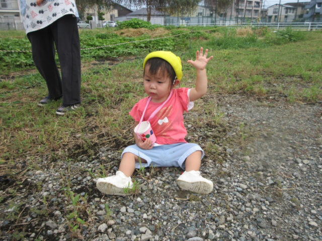 石や草に葉っぱ・・・。ひよこ組さんにとっては宝の山!色々な物を触って感触を楽しみ集めてみたり・・・。