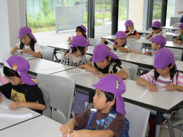教室では植物の種を真似て作ったものを上からくるくる飛ばして遊んだり・・・