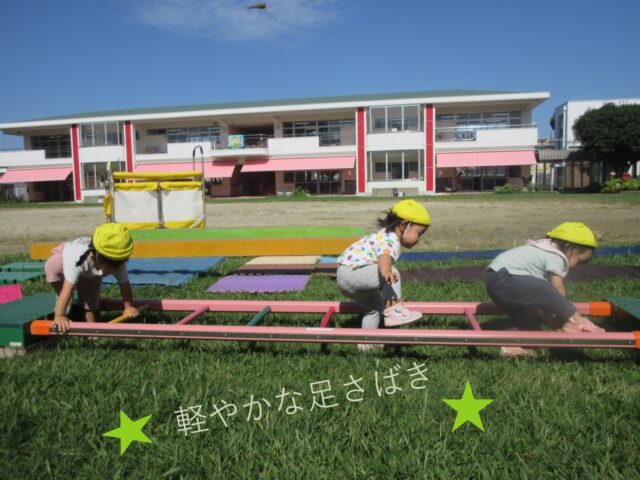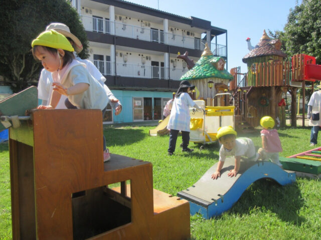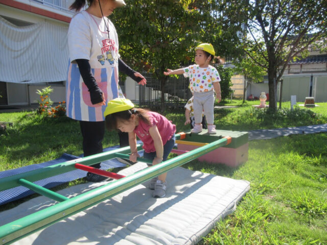 今週の火曜日に幼稚園部といちご組さんが巧技台で遊んだ日。