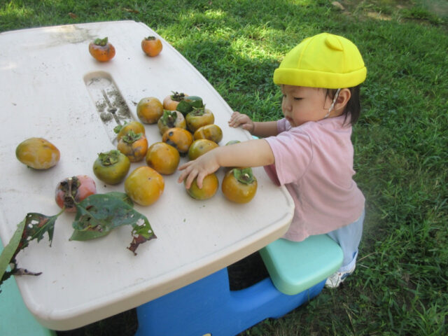 遊び納めは園庭の柿をもらって、お部屋へ戻りました。この柿をもとに製作をしてお土産となったようです。
