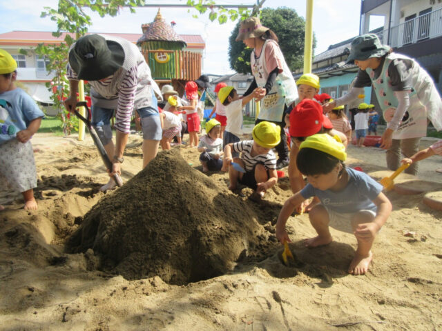 今日は、砂場遊びをおもいきり楽しみましたよ。