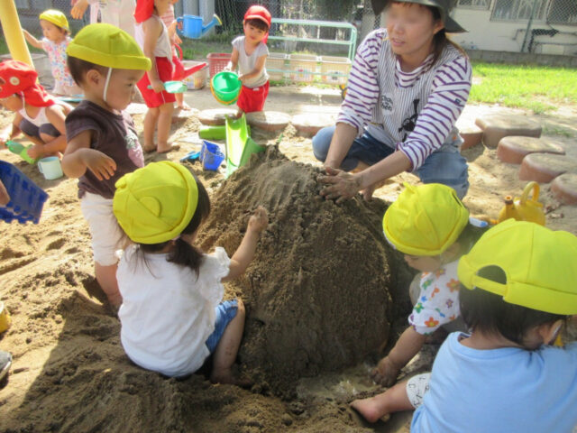 先生が作り出した大きなお山を一緒になって作る様子がみられたり・・・。
