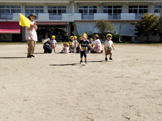 「よ~いどん!」の掛け声にみんなしっかり反応してゴールまで上手に走ることができました。