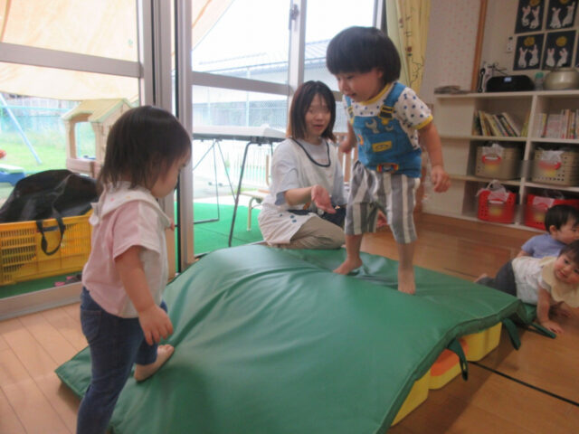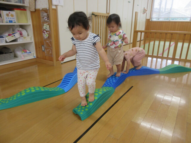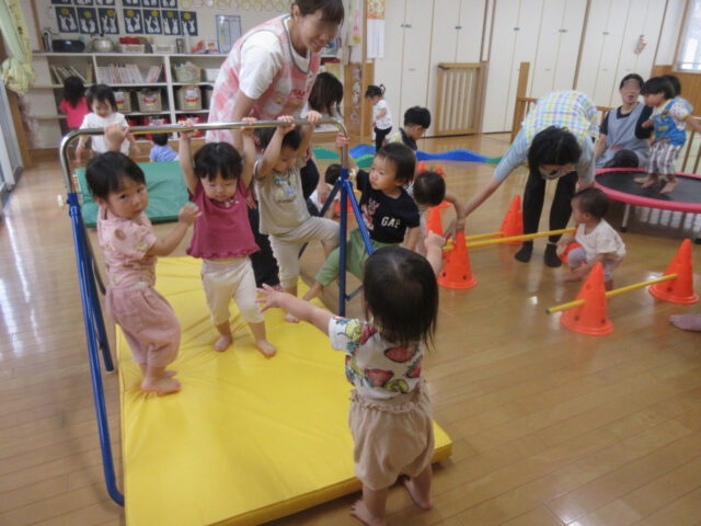 お部屋でもいっぱい身体を動かしているひよこ組さん。