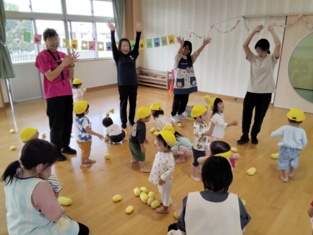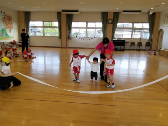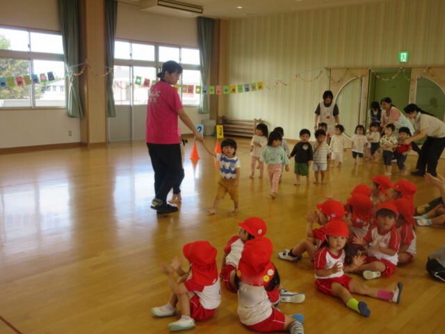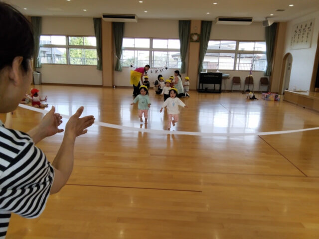 月齢が低いお友達もご機嫌で、いちご組さんがしっかり手を握ってゴールまで付き添ってくれてとても微笑ましかったです。