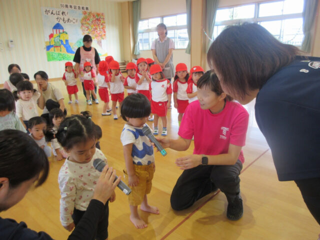 練習では、「頑張ります!」と元気よく言えていたようですが、いつもと違う雰囲気にドキドキ・・・。出したくても声が出なくなっちゃったようで・・・。
