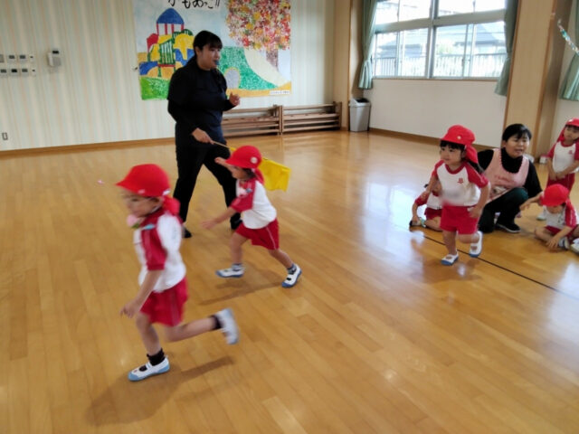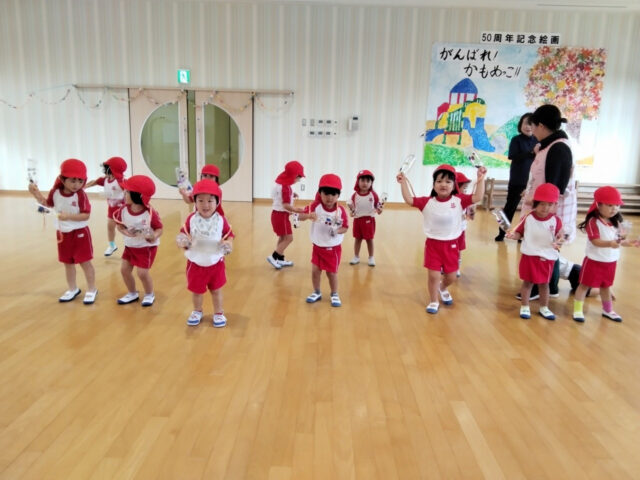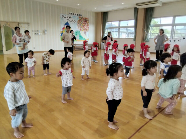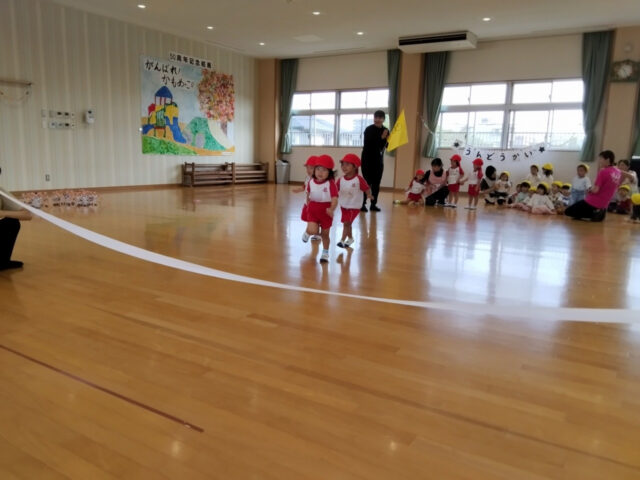 しっかりと運動会の形としてプログラムが進み、ひよこ組さんの成長を感じることができた運動会ごっこでした。