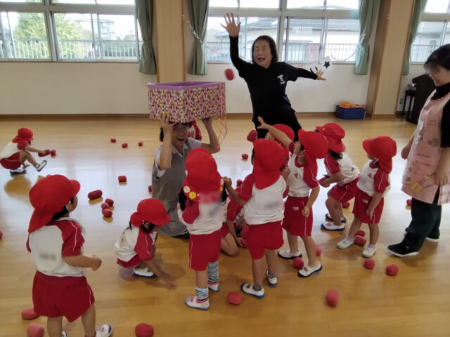飛び入りのお友達の力も借りて・・・「運動会ごっこ始まりで~す」