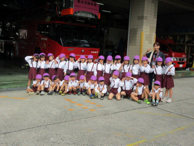 本日年長さんは、熊本市中央消防署(熊本市広域防災センター)に出かけてきました。