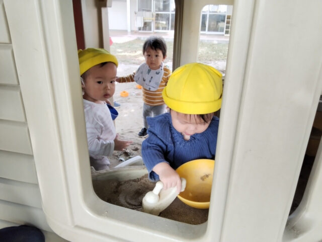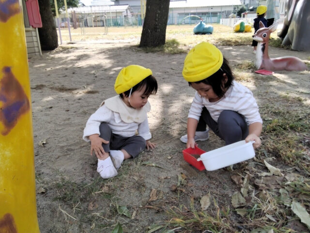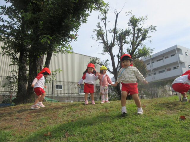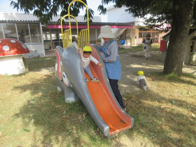 保育部さんでは、ゆっくりお外遊びを楽しみました。