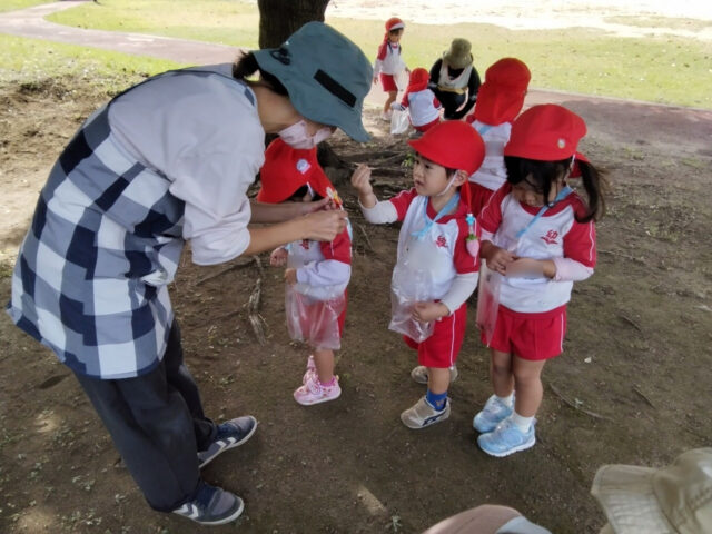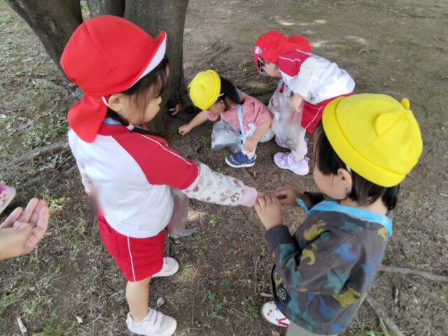 どんぐり公園には小さなどんぐりがいっぱい落ちていて、みんな夢中になって拾っていました。
