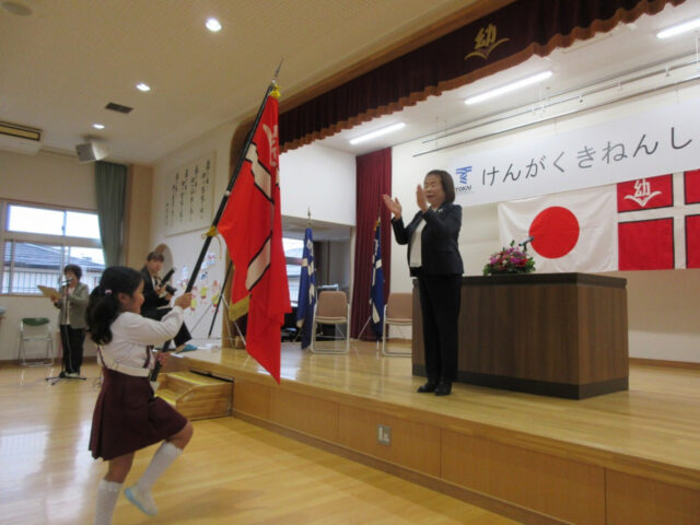 年長代表の女の子が堂々とした姿で立派に旗を持って入場してきました。とってもカッコいい!!