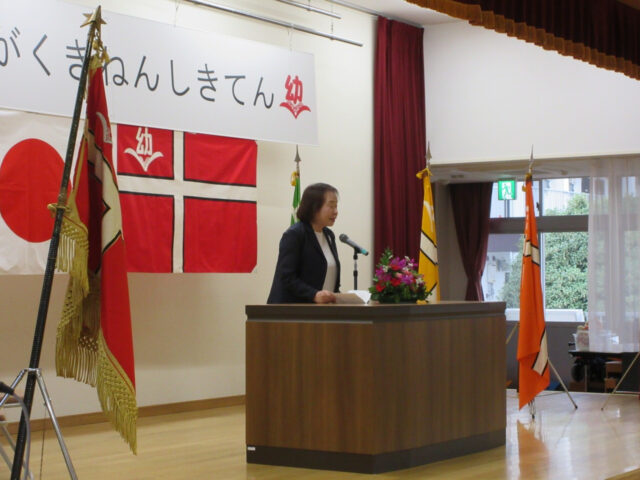 園長先生のお話を受けて、年長さんが「誓いの言葉」を宣言。