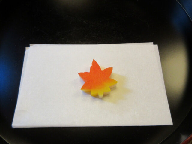 本日のお菓子は、もみじとイチョウの葉っぱでした。