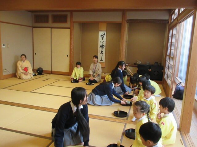 年長さんは熊本星翔高校のお茶室に出向き、茶道教室に参加しました!!