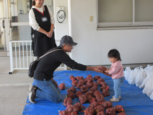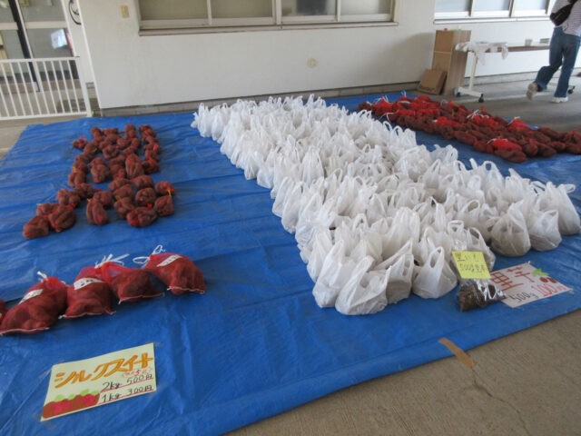 サツマイモ(2種)、里芋、花のコーナーでした。
