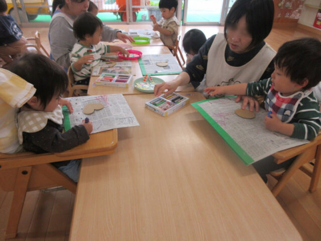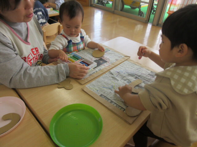 お誕生会の後は、12月のクリスマスに向けて、飾り作りを楽しんだひよこ組さん。