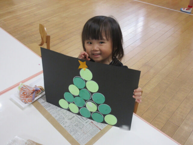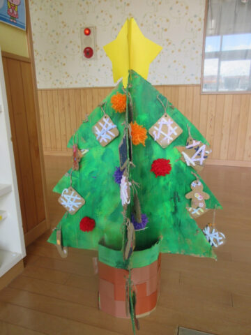 保育部さんでは、クリスマス製作が始まりました。この可愛いツリーは、ひよこ組さんの手作りツリーです。