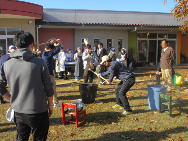 晴天に恵まれ、毎年恒例のお餅つきを今年も盛大に行いました。