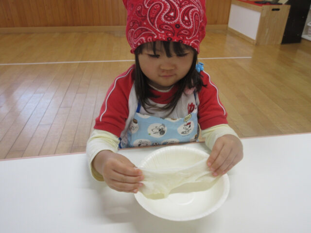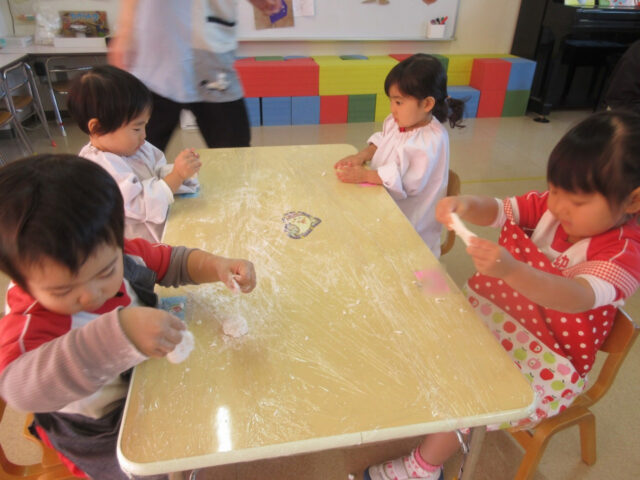つきたてのお餅を触って遊びました!来年は食べようね。
