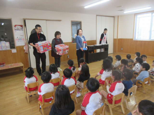 幼稚園部のお母さん達がバザーで頑張って買ってくださったおもちゃ!「保育部さんにも♡」って持って来てくれました。