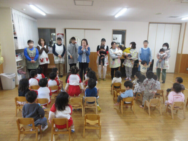 一年間たくさん遊んだ先生達も前に出てきて「みなさん、良いお年をおむかえくださいね」とご挨拶し合いました。