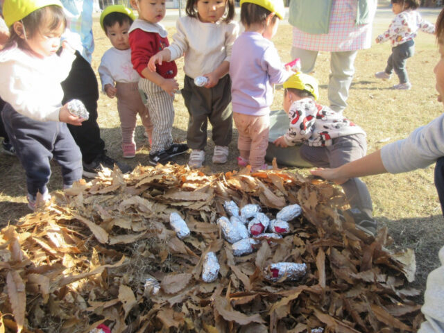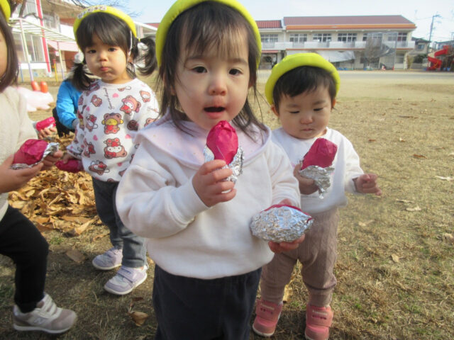 そんなお天気にピッタリ!ひよこ組さんが焼き芋ごっこをして遊びました。