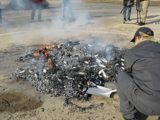 燃えてしまった後、「あったかいね~」と手をかざしてみたり、背中を温めたり・・・