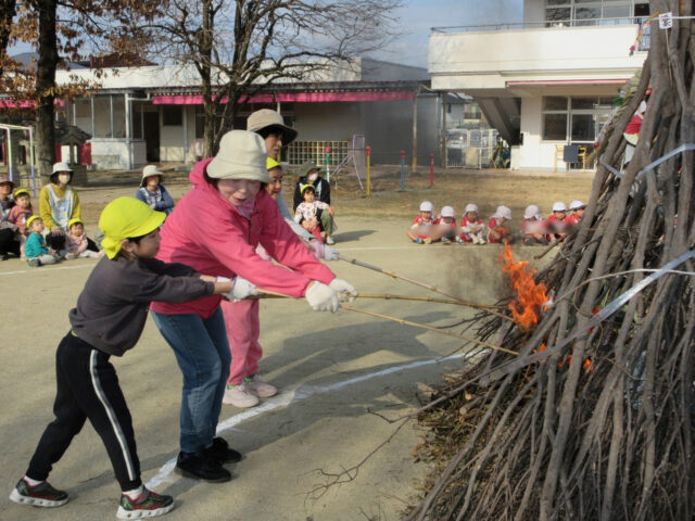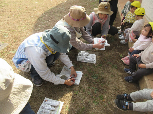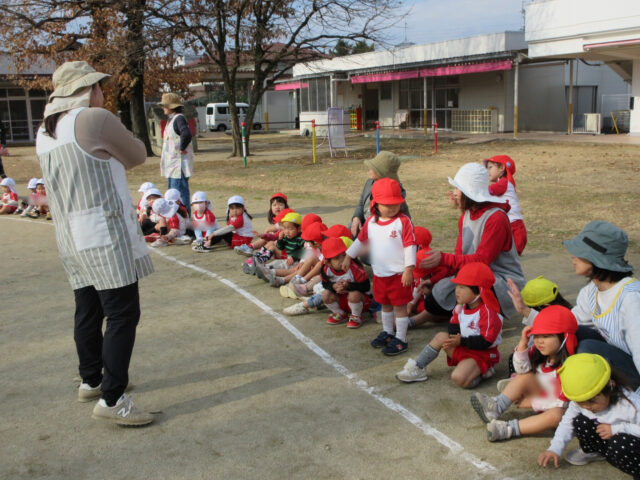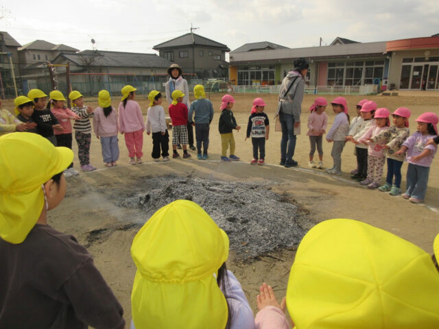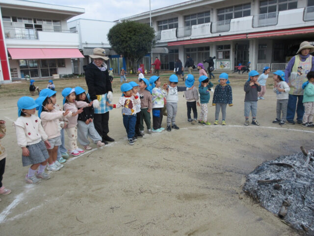 お天気も良くて、今日は全園児で「たき火」を行いました!!