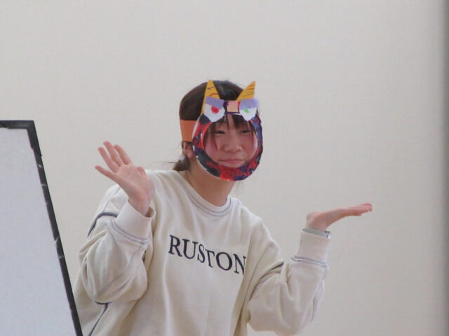 クイズが終わると、みんなが幼稚園で作った鬼のお面を学年ごとに紹介しました。