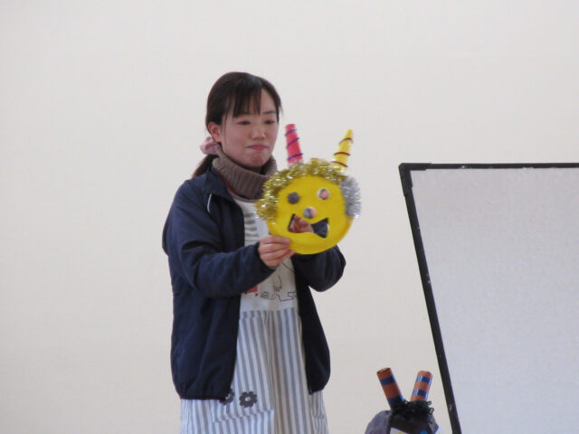 お待たせしました!!今日のプレゼントは、「節分」にちなんだペープサートでのクイズ☆でした。