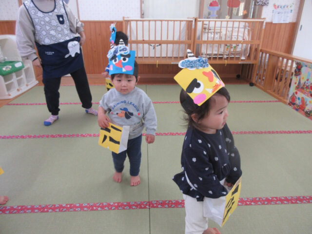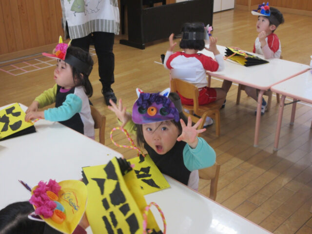 そして、明日は節分です。数日前から鬼のお面や新聞紙で豆を作ったりしているので、子ども達もなんだかソワソワしながらもちょっと楽しみな様子です。