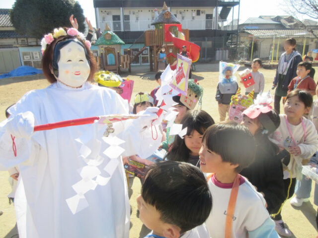 オニが去った後は、福の神様に頭を「シャンシャン」としてもらい、みんなお利口さんになりました!