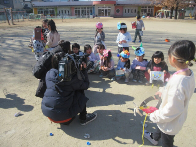 今日は、たくさんの報道関係の方も取材に来られて、インタビュー中の年長さん。