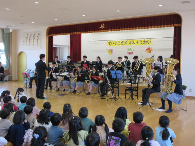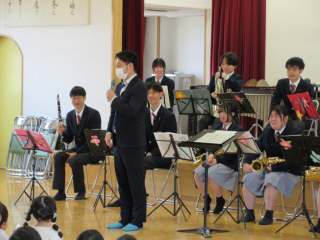 最初に顧問の先生より「今日はみんなの知っている音楽をたくさん演奏します。楽しんでくださいね~」と