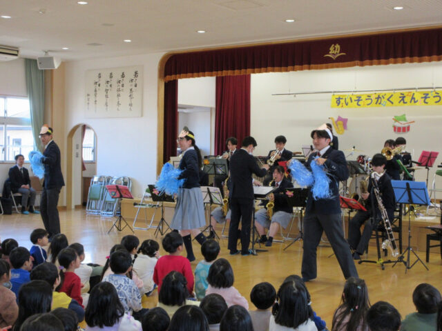 最後は、幼稚園の園歌を演奏してもらい、みんなで元気に歌いました。