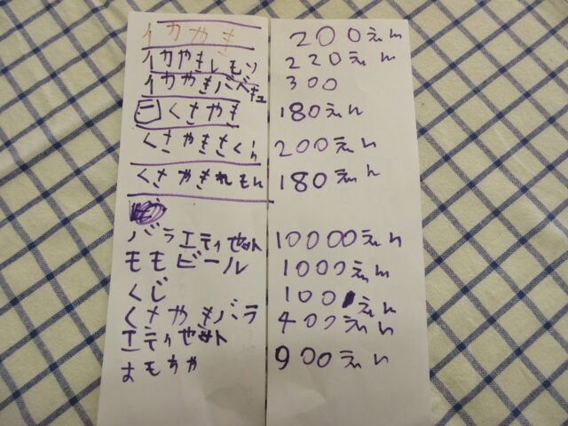 値段を聞いて、お財布の中から一生懸命お金を探す年長さんの姿も、とても可愛らしかったです。