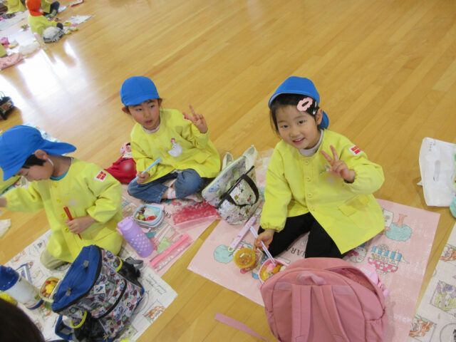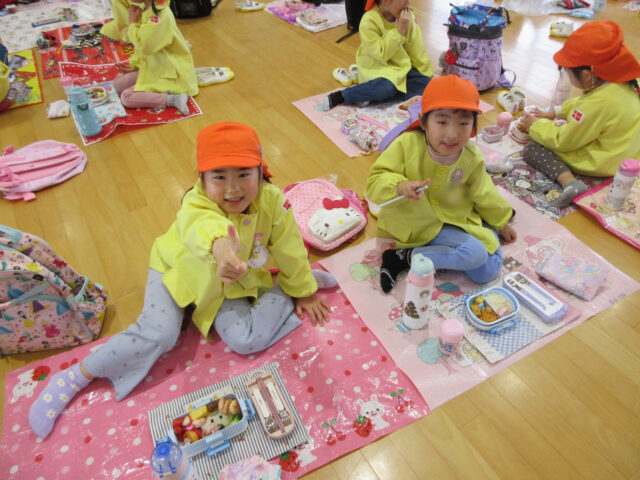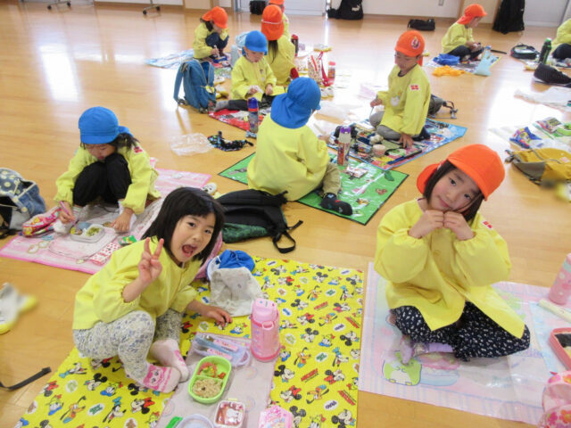お昼ご飯は園に帰って、2階のホールで!!