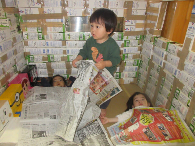 絵本を読んだり、新聞紙布団で寝てみたり・・・。