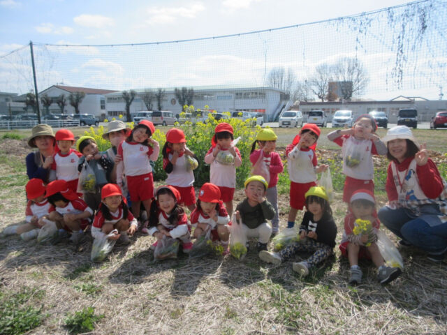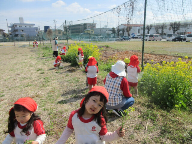 芋畑横の菜の花が満開となり、いちご組さんがお散歩しながら菜の花摘みを楽しんできました。
