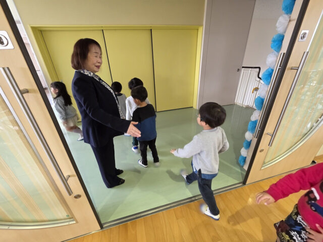 園長先生から、1年間の頑張りを褒めていただきました。園長先生とお約束した『あいさつ』も元気いっぱいできるようになりました。