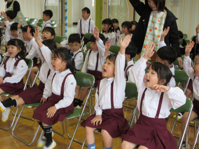 お話も立派に聞けるようになりました。最高学年の年長さんになるのをとても楽しみにしています!!