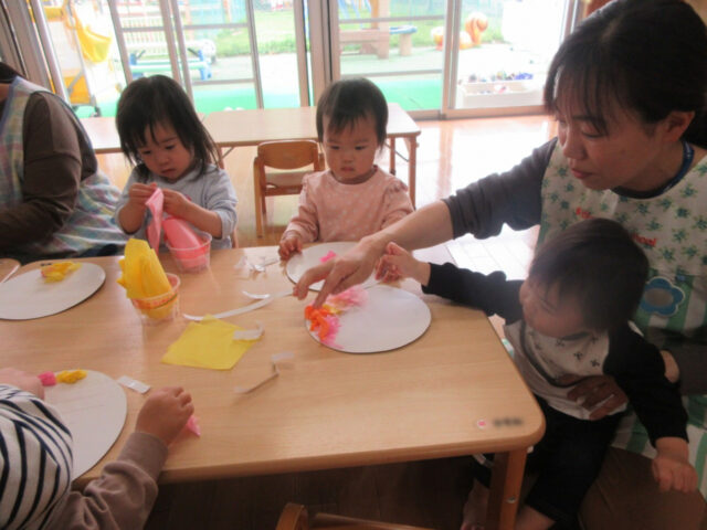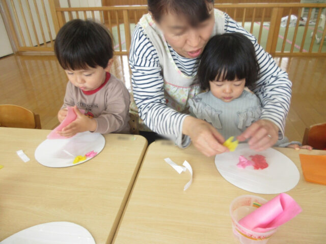 製作活動も少しづつ取り組みだして・・・手先をしっかり動かします。